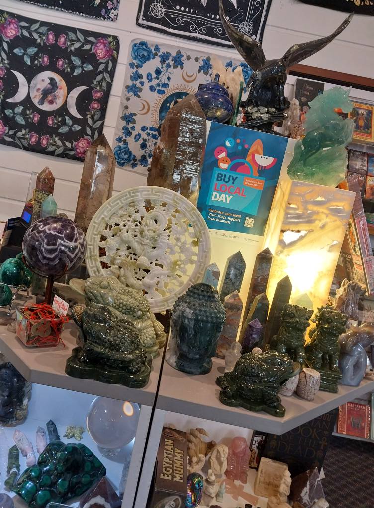 Discover wonders of nature including crystalized minerals, fossils, and etymology, plus esoteric books, spiritual tools, and unusual stone carvings.